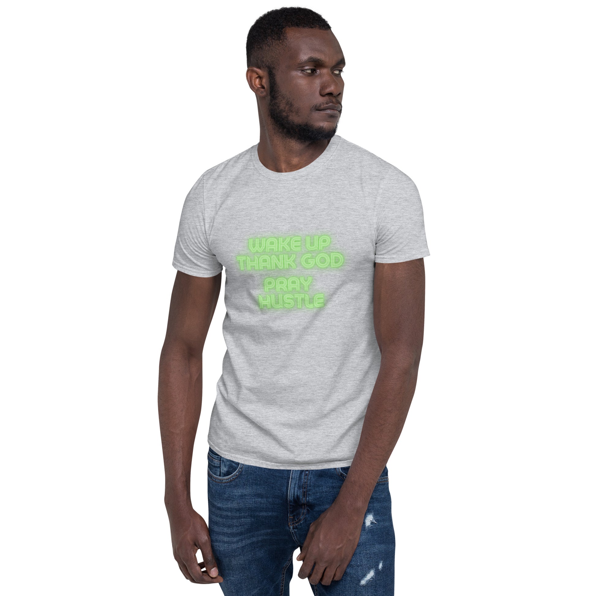 Wake up, thank God, pray and hustle for your blessings. This motivational t-shirt will help you stay focused on the order of handling business in your life. You've now found the staple t-shirt of your wardrobe. It's made of 100% ring-spun cotton and is soft and comfy. The double stitching on the neckline and sleeves add more durability to what is sure to be a favorite!